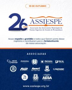 HOJE A ASSIESPE CELEBRA 26 ANOS DE ATUAÇÃO EM DEFESA DA INTERIORIZAÇÃO E DO FORTALECIMENTO DA EDUCAÇÃO SUPERIOR EM PERNAMBUCO.